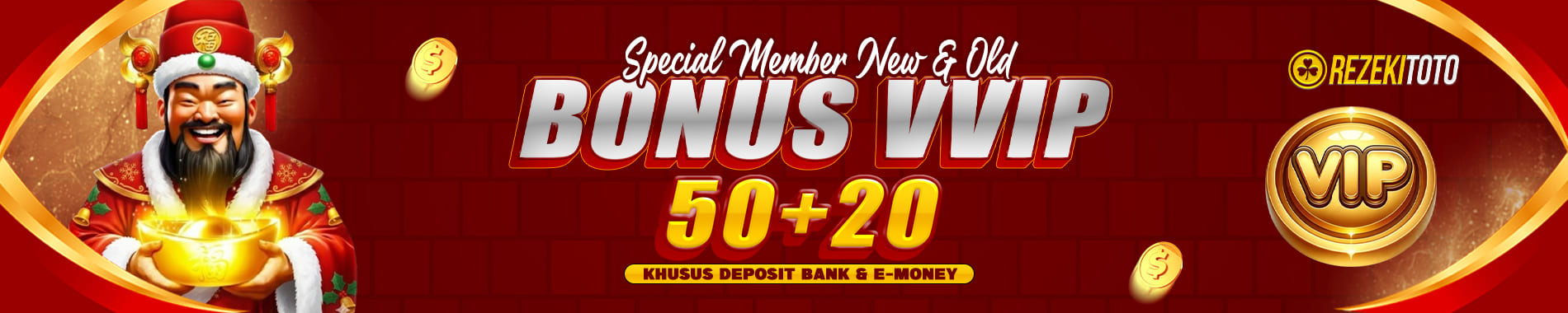 BONUS VVIP KHUSUS DEPOSIT VIA E-MONEY DAN BANK 50 + 20 REZEKITOTO